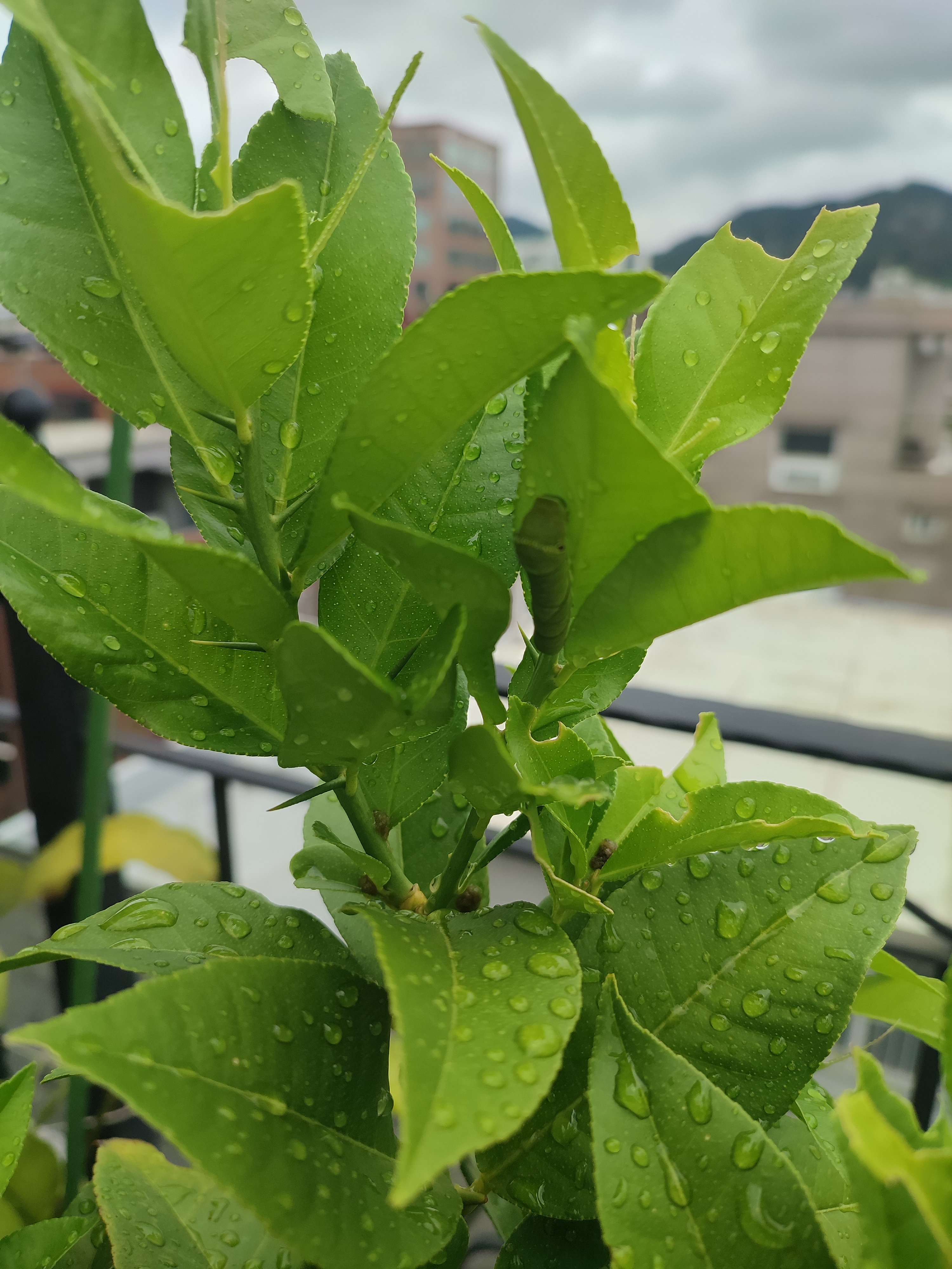 🌿 비 오는 날의 레몬나무, 그리고 녹색 손님들