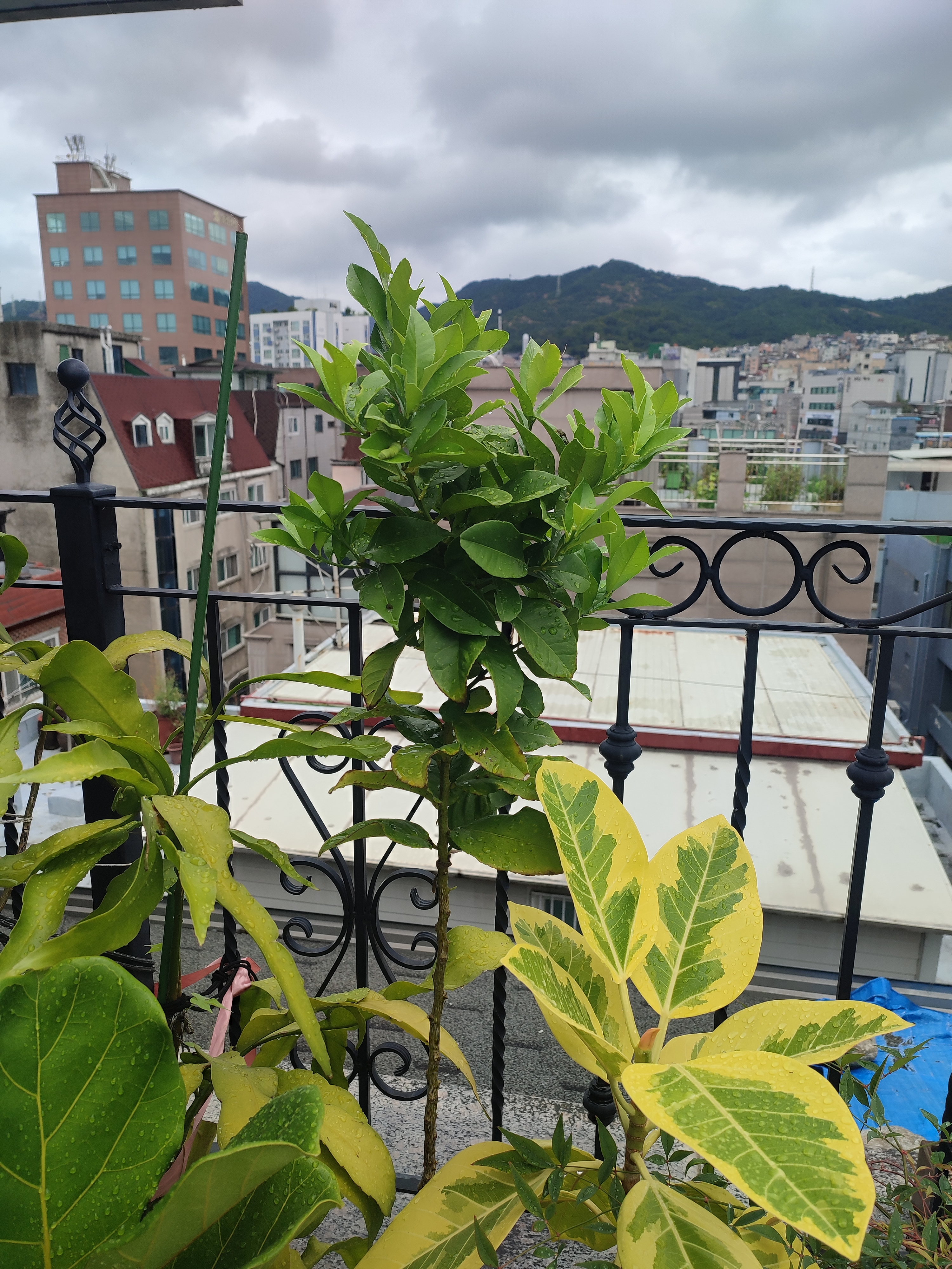 4년차 실생 레몬나무에 찾아온 특별한 손님 이야기🍋 평범했던 아침 순찰, 그런데...옥상정원 식물들을 확인하러 나간 아침.자연발아한 씨앗부터 키우기 시작해 올해로 4년째, 키 큰 외목대 형