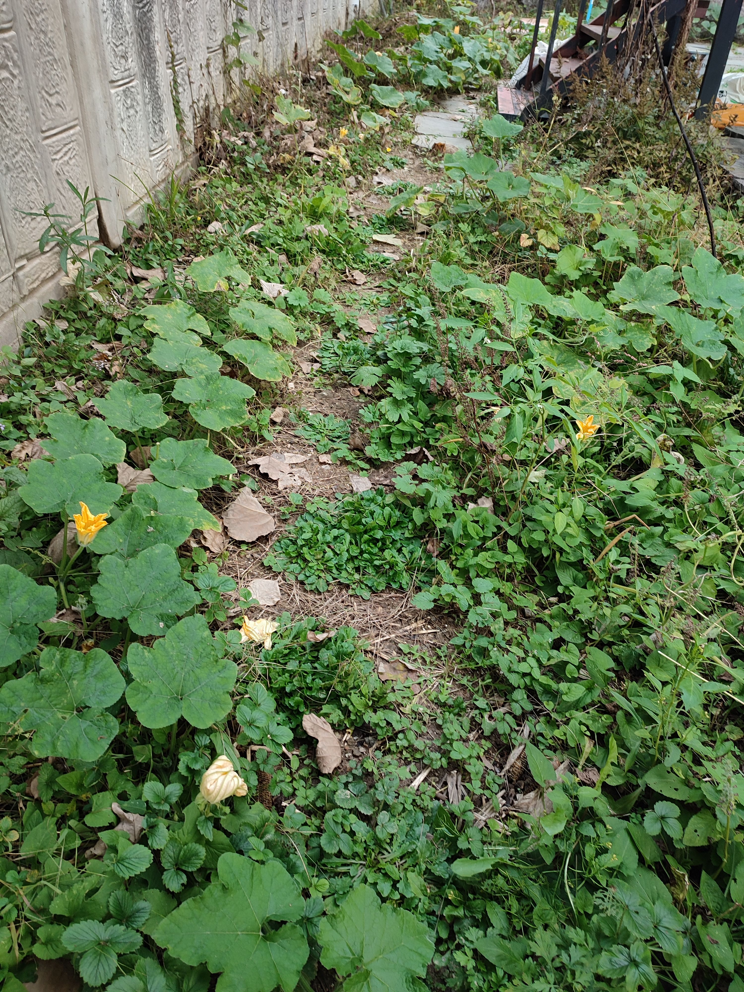 호박 덩굴이 그늘을 만들어주면서 더 활착에 도움이 된 것 같아요.
