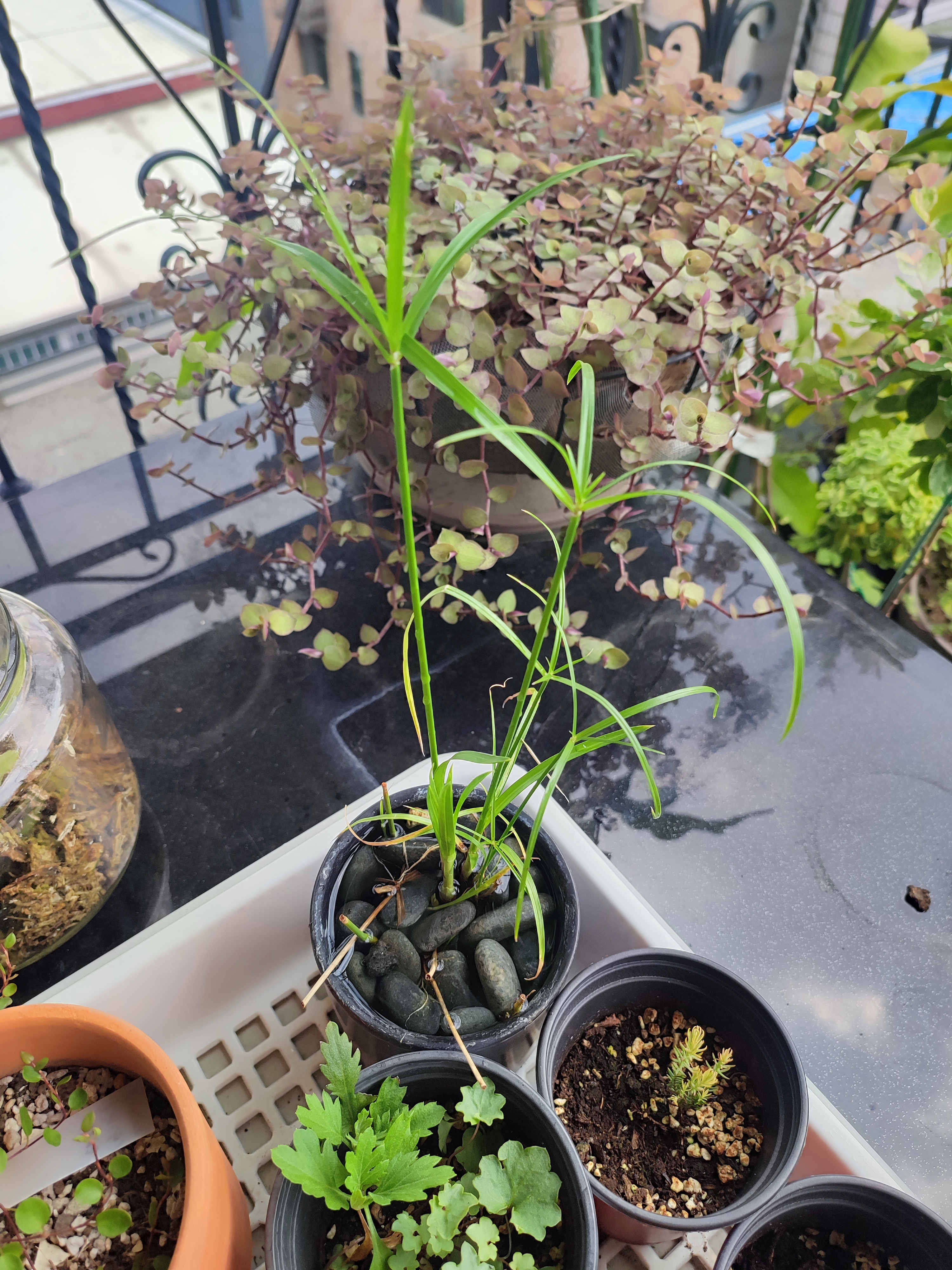 그건 아닐거에요. 왼쪽의 시페루스 화분도 작년까지는 워터코인과 합식되어있었거든요.
