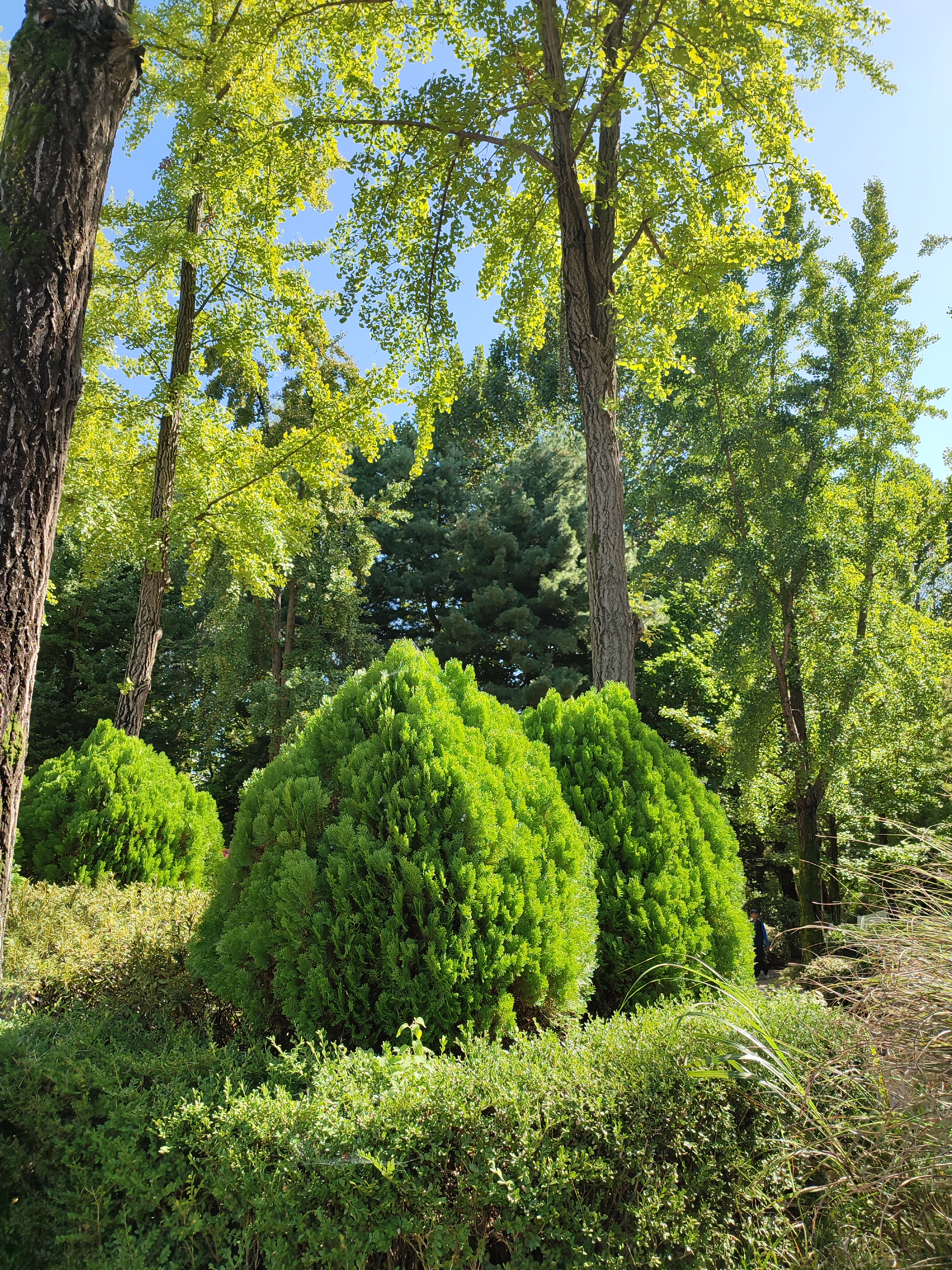 사이즈는 은행나무 아래에 있는 황금측백보다 더 큰 것 같아요.