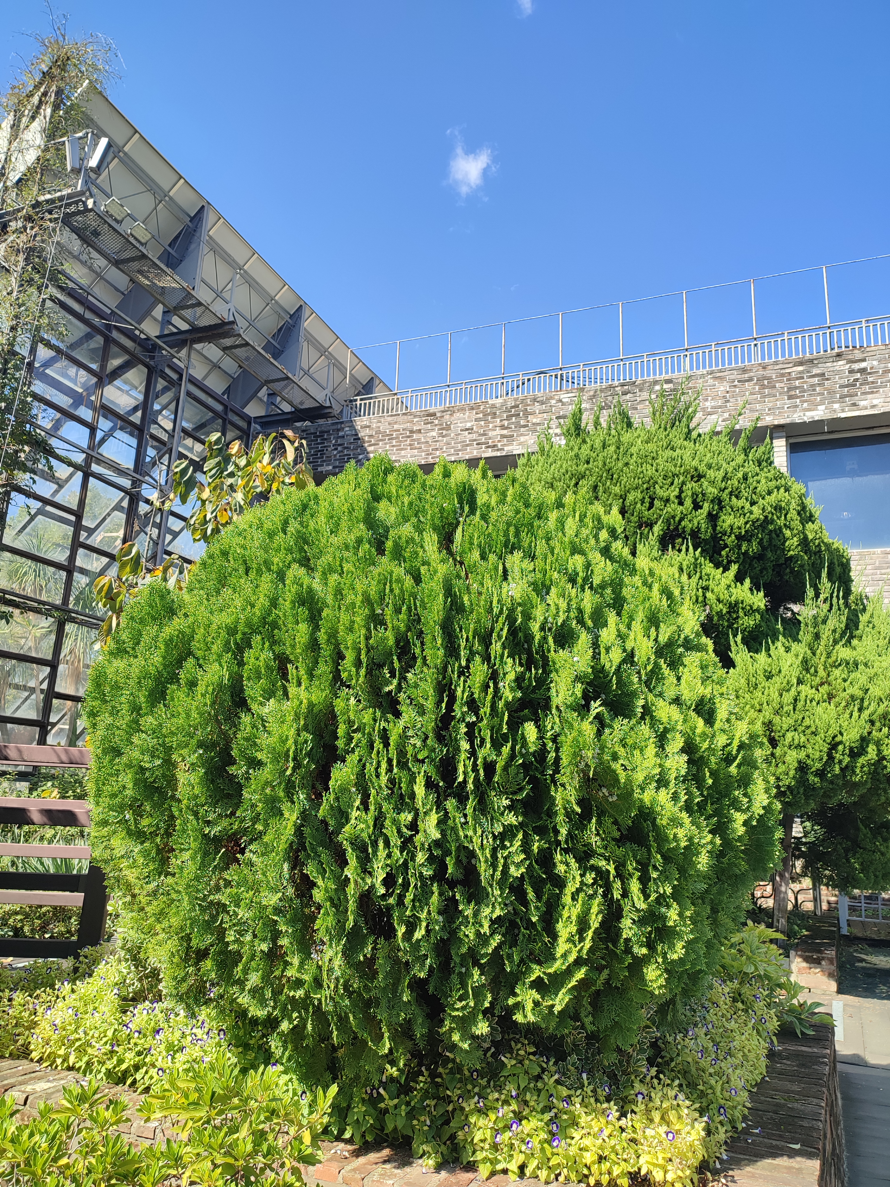식물원 앞에 꽤 거대한 황금측백이 있어요.