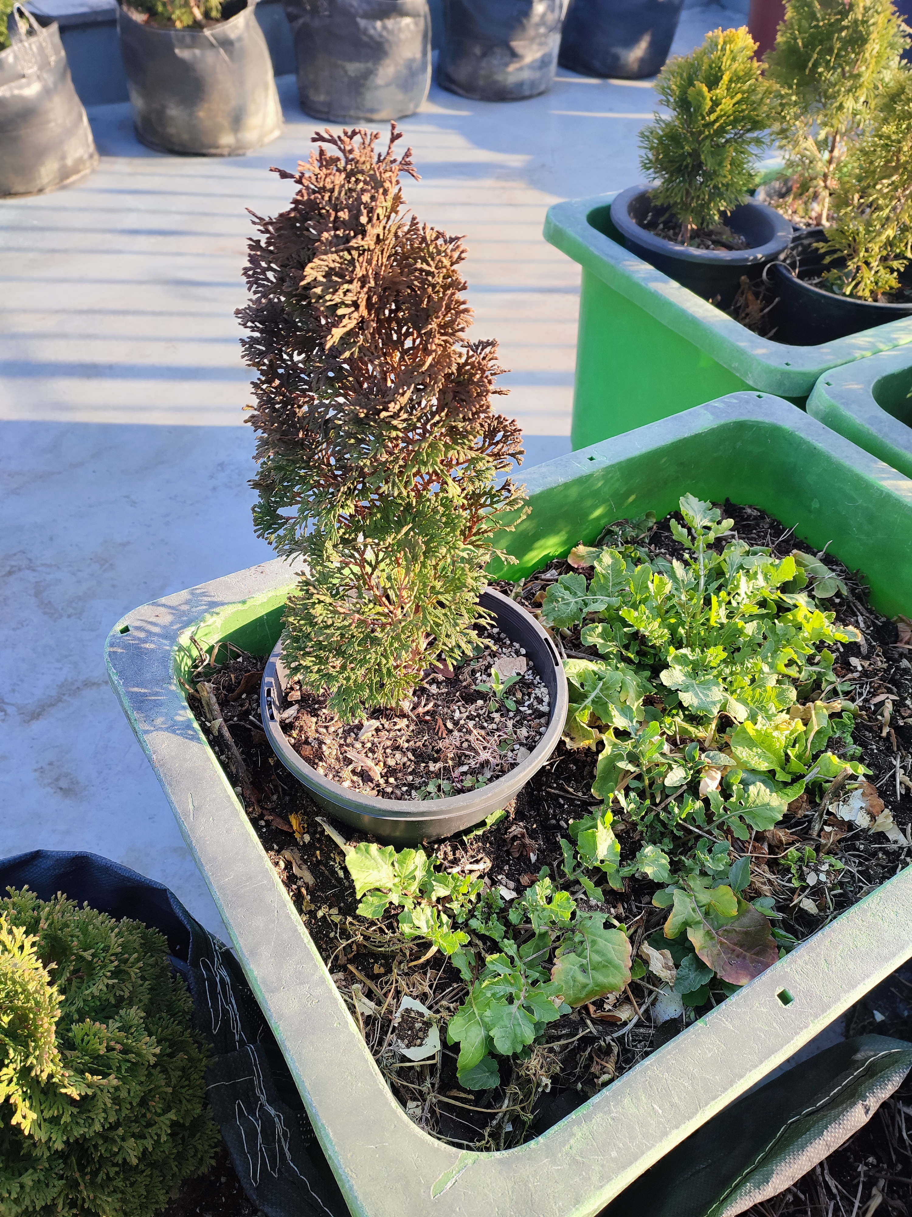 상자텃밭이 측백나무 텃밭이 되었네요. ㅎㅎ